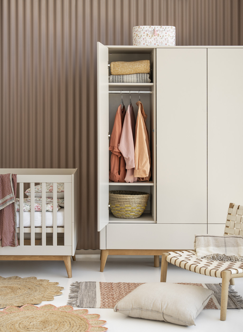 A Sato 2 ajtós szekrény kompakt, mégis jól átgondolt belső elrendezéssel rendelkezik. A belső tér állítható polcokat és ruharudat tartalmaz, így rugalmasan alkalmazkodik a gyermek növekvő igényeihez.